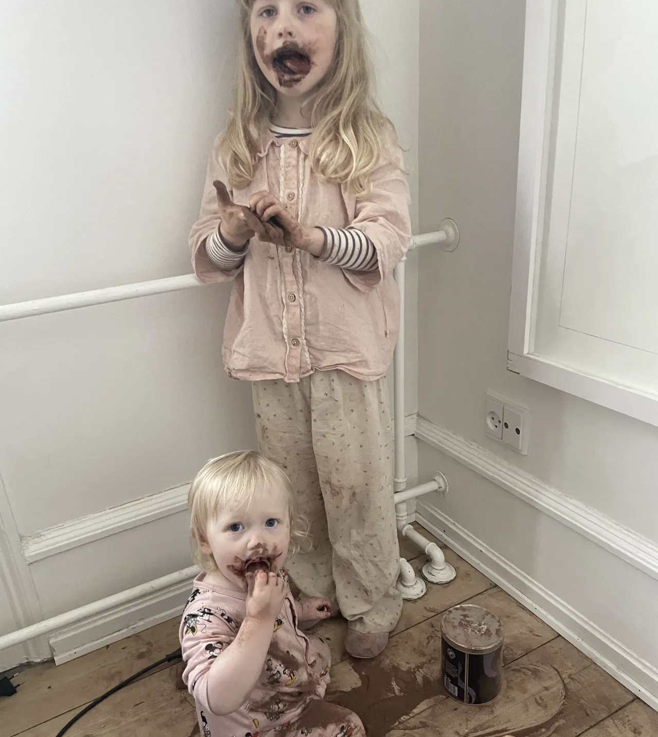 Sometimes stuff happens, and we know it happens for you too, where you think “What, how did that happen? How is it even possible?” and just when you watch your world sink down, you can’t stop laughing and this new thought sparks in your mind “This will be memorable one day, once it’s over - please let that be true” That’s what happen to Anna the other day, when she found her home studio, her white sheep fur chair and two kids overdozed with coco powder! It was damn hard to not laugh and really show the kids, that’s not something to do, it was litterally hours of cleaning - but it was also a great memory, and a great photo not the least.