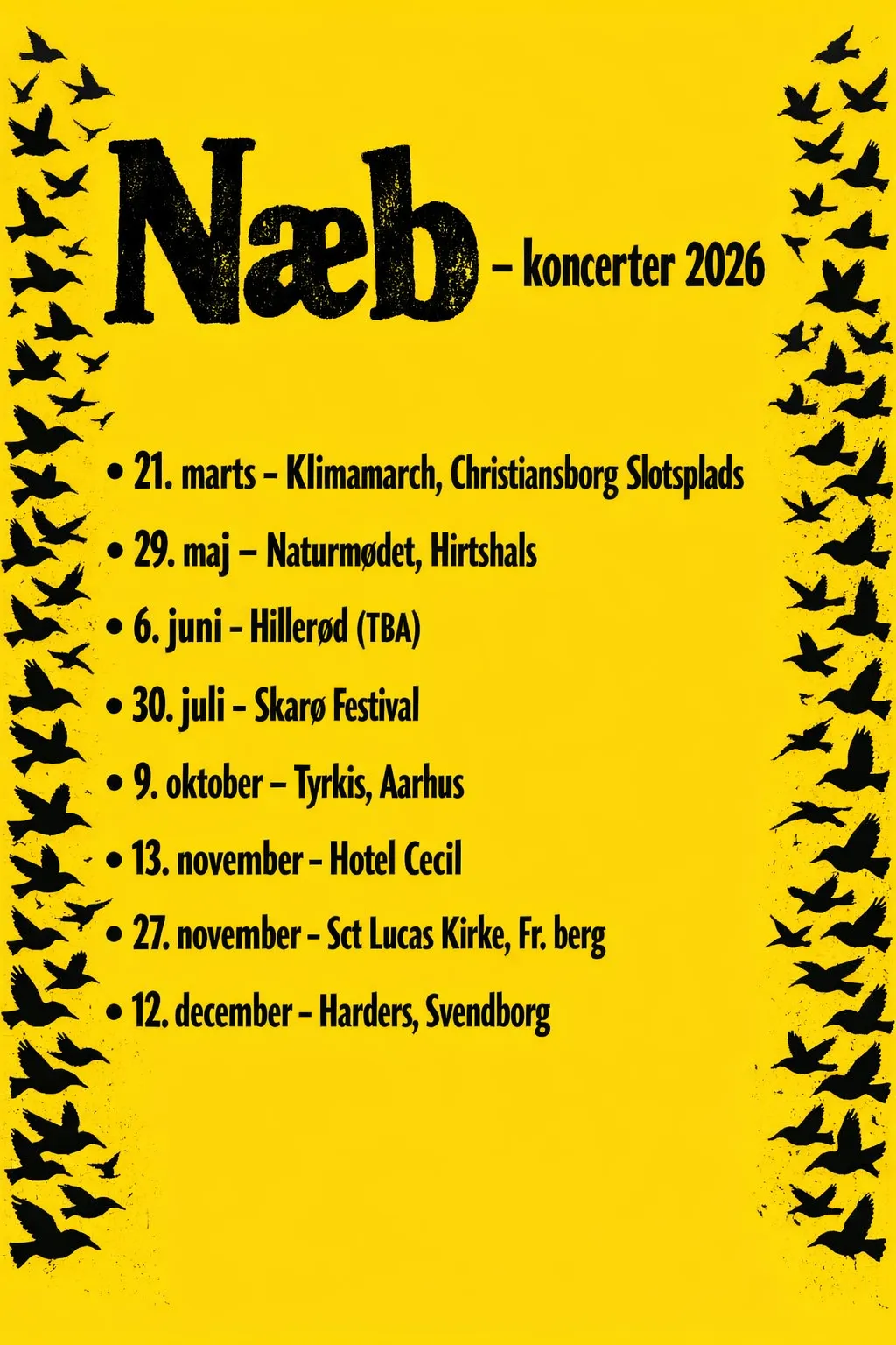 Vi har en hel række koncerter foran os i 2026 - og vi arbejder stadig på en håndfuld mere. Vi kan slet ikke vente med at komme rundt i hele landet og spille for jer!